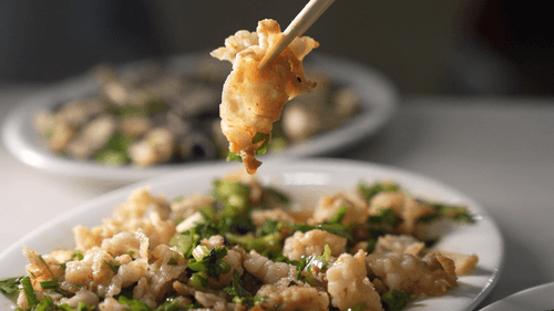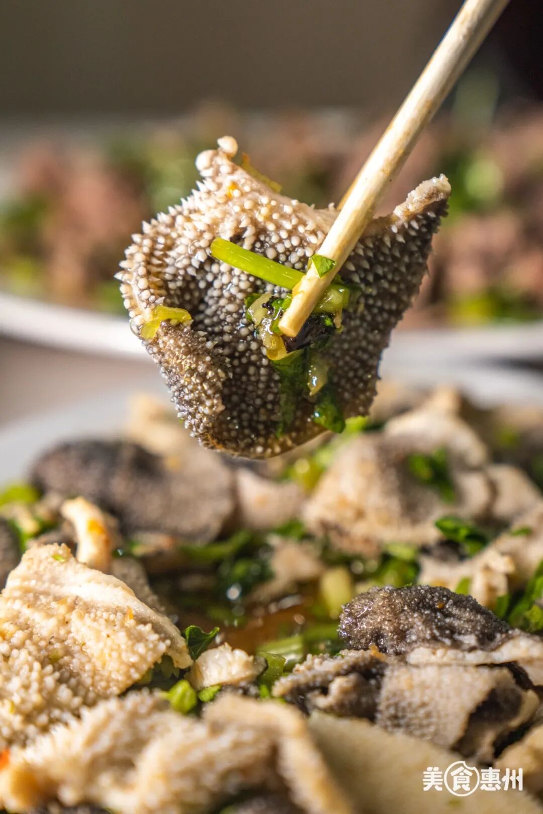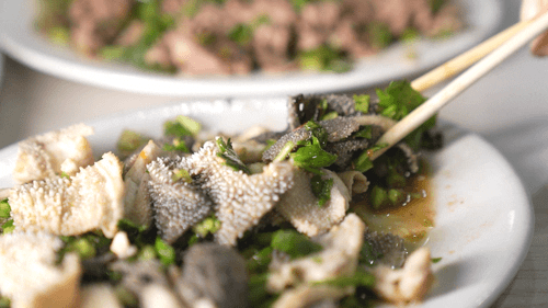 牛百叶融入秘制的酱汁,又有了新的风味。用牛百叶包裹香菜、芹菜再蘸上酱汁,一口下去牛百叶的清脆搭配着辛香的味道一起涌入喉咙。