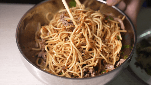 每日现切的牛肉在牛骨汤里汆熟,只有把控好温度和时间才能最大程度的保证牛肉的鲜与嫩可以同时存在于唇齿之间。酱拌之后牛肉的味道多了一些层次,丝丝入味。