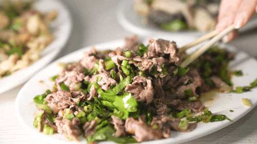 筷子夹起一大口的牛百叶一起放入口中才叫过瘾!咀嚼感十足的同时酱香味upup!