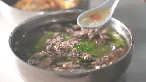 牛骨汤汤底加成的牛肉汤粉,每一口都是牛肉的鲜味在刺激着味蕾。微微还带着粉红的牛肉才是极致的美味,汤粉吸溜入口再来夹起牛肉塞入口中,超满足!
