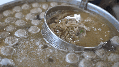 新鲜的牛骨汤在锅中咕嘟咕嘟的冒泡,牛肉的香味成为了最好的揽客招牌。在锅中烫、涮、煮一气呵成,员工之间配合默契,不一会就能做好一份美味。