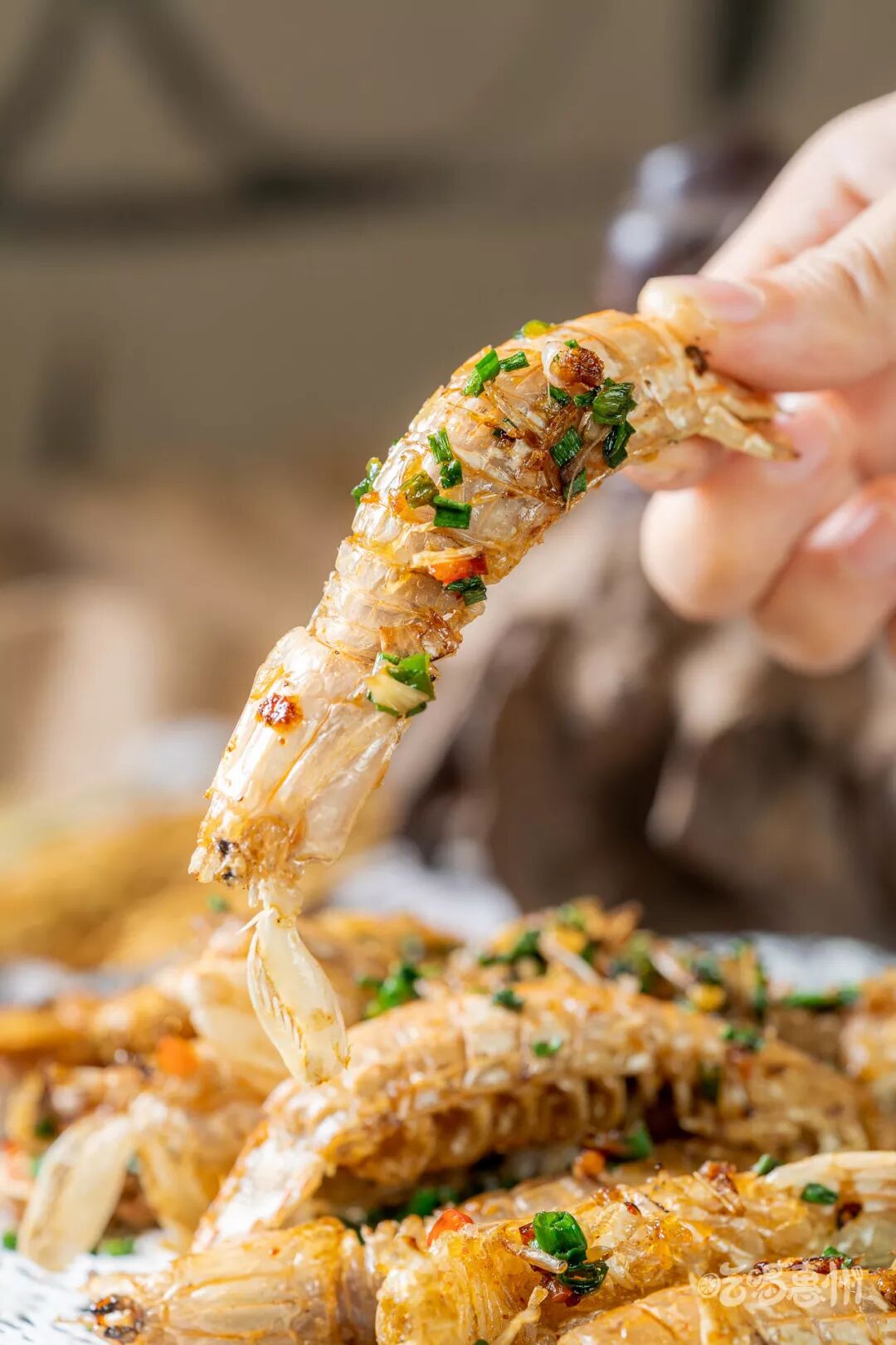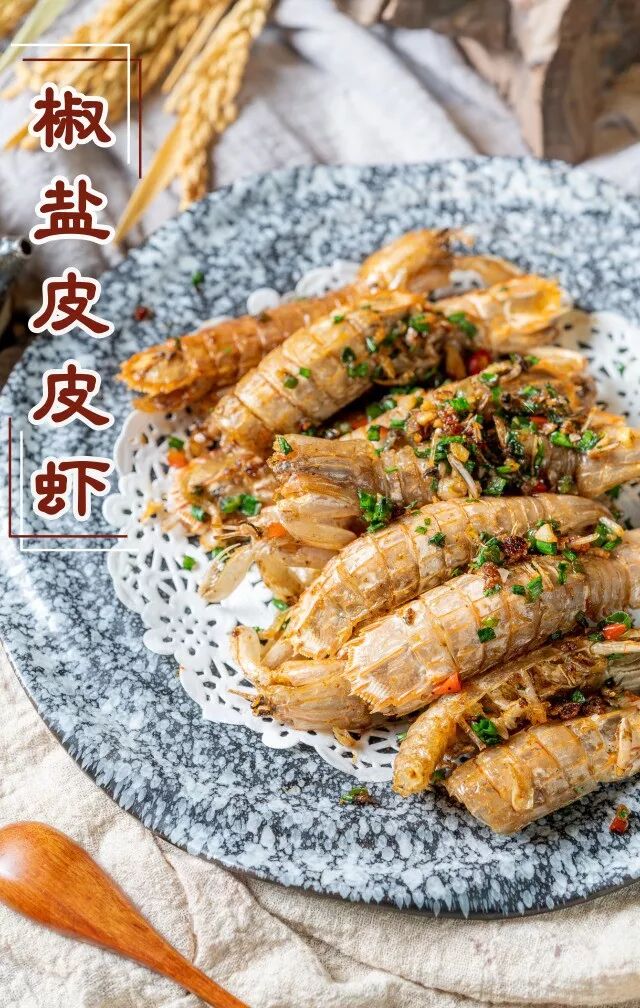 刚上桌就散发着由内而外的椒盐咸香味,翻炸过后的皮皮虾外酥里嫩,虾肉都带着配料的香味。