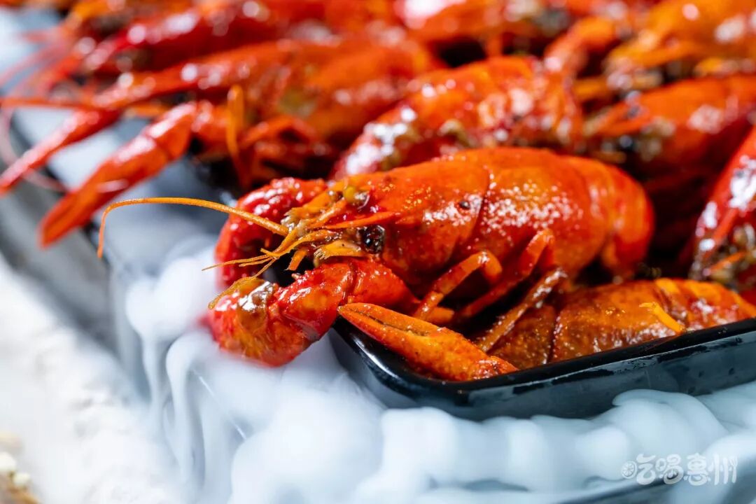 摆在外围的小龙虾,仿佛想跨越烟雾,直接送到嘴里,让你快点感受到它的美味。