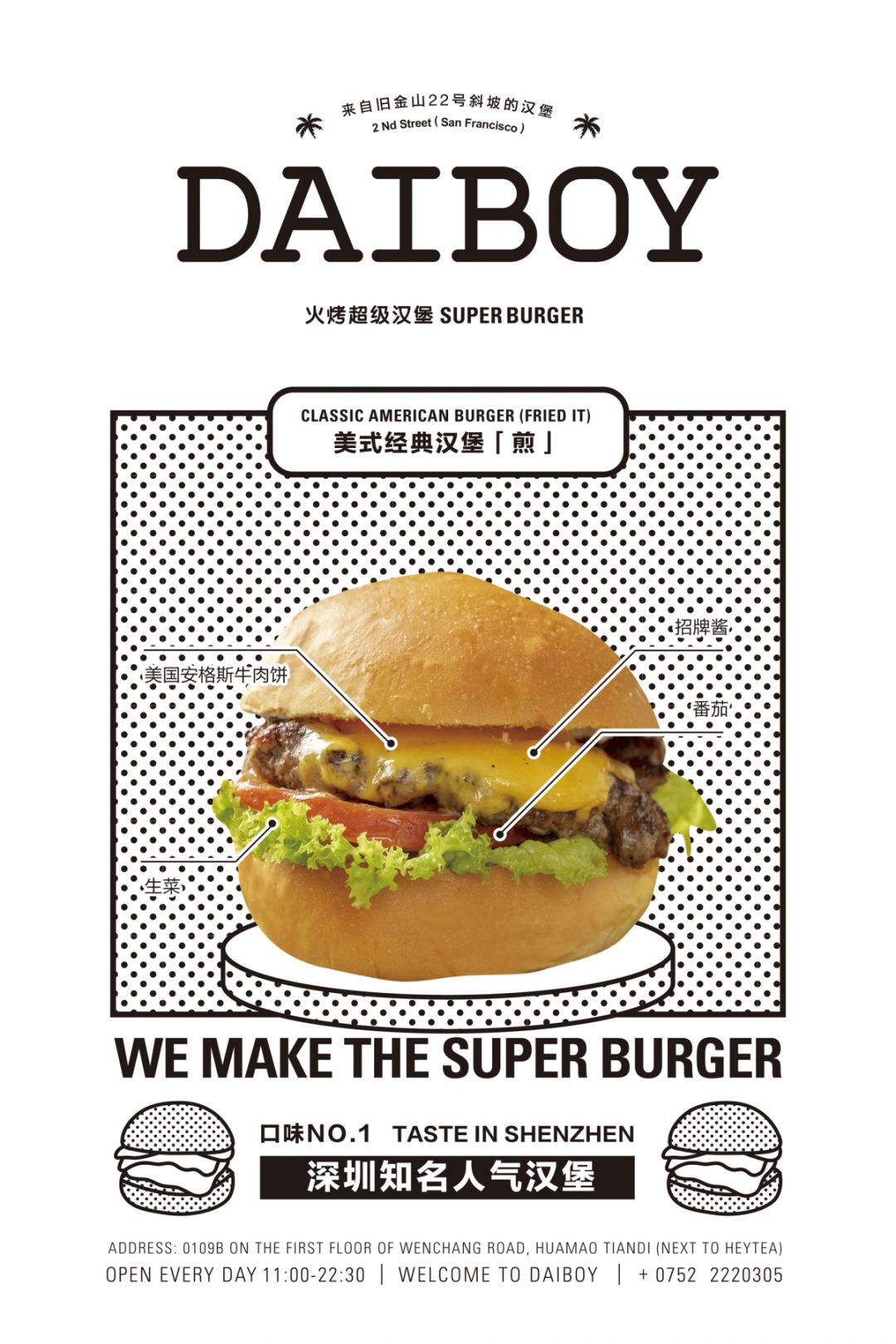 这个在深圳每月卖出9000+个的人气招牌汉堡,是创始人alan呆在美国旧金山的22号街上遇见的汉堡大师,在著名的汉堡店学习到的配方后做出来的。