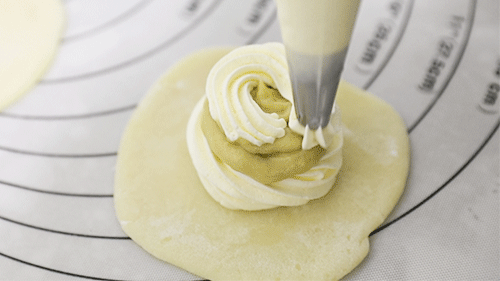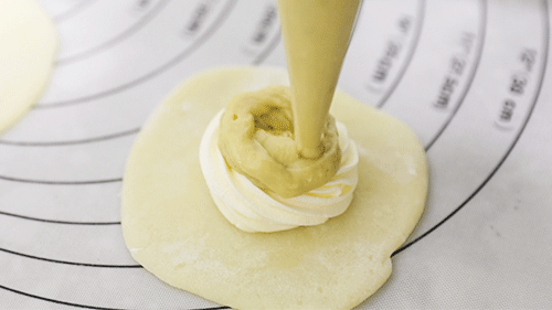 打开泡芙顶部的酥皮,肉眼可见的榴莲果肉满满都是,谁能不爱这香酥的一口!超级赞!