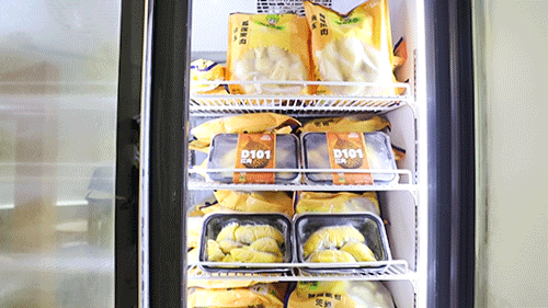 进门就能看到冰柜中的榴莲塞得满满当当,冷链空运而来的新鲜榴莲,需要在低温环境下避免水分流失,液氮冷冻之后的榴莲运输到国内才能最大程度保证口感和品质。