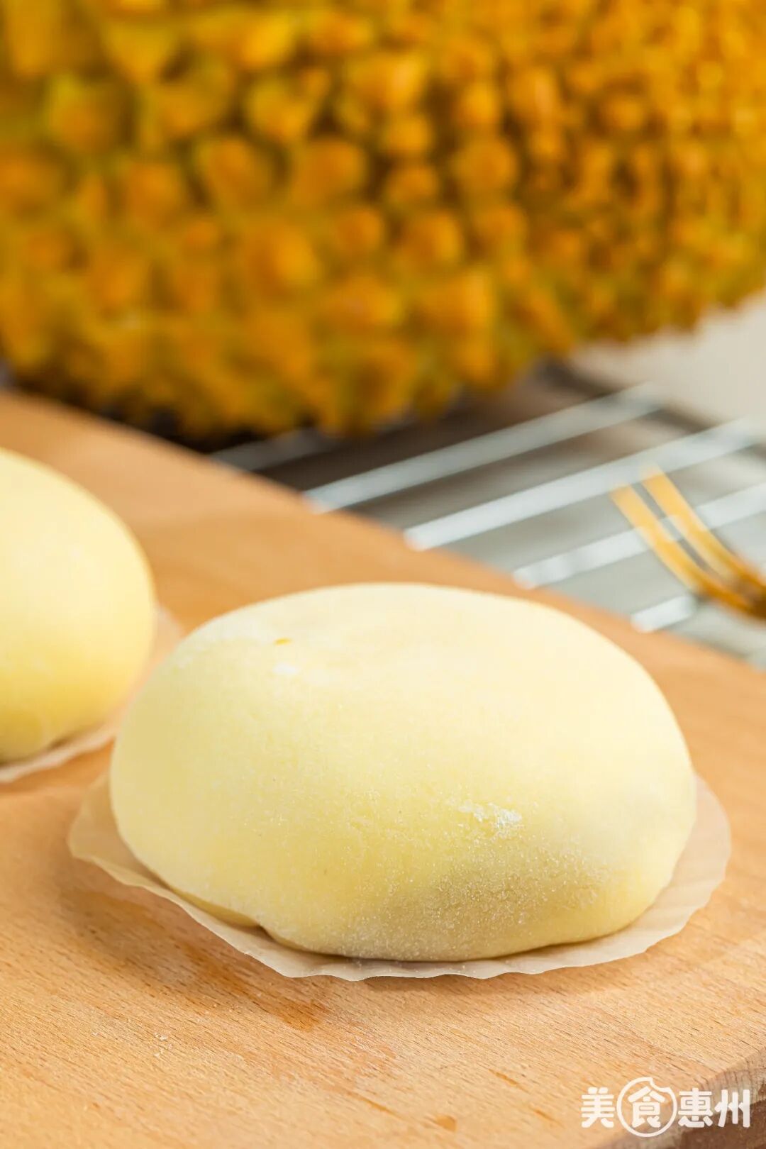 胖胖的榴莲雪媚娘,看到就已经跃跃欲试了。一半果肉一半奶油的完美比例入口即化,软糯的外皮咬破的瞬间就能感受到苏丹王榴莲的香甜。