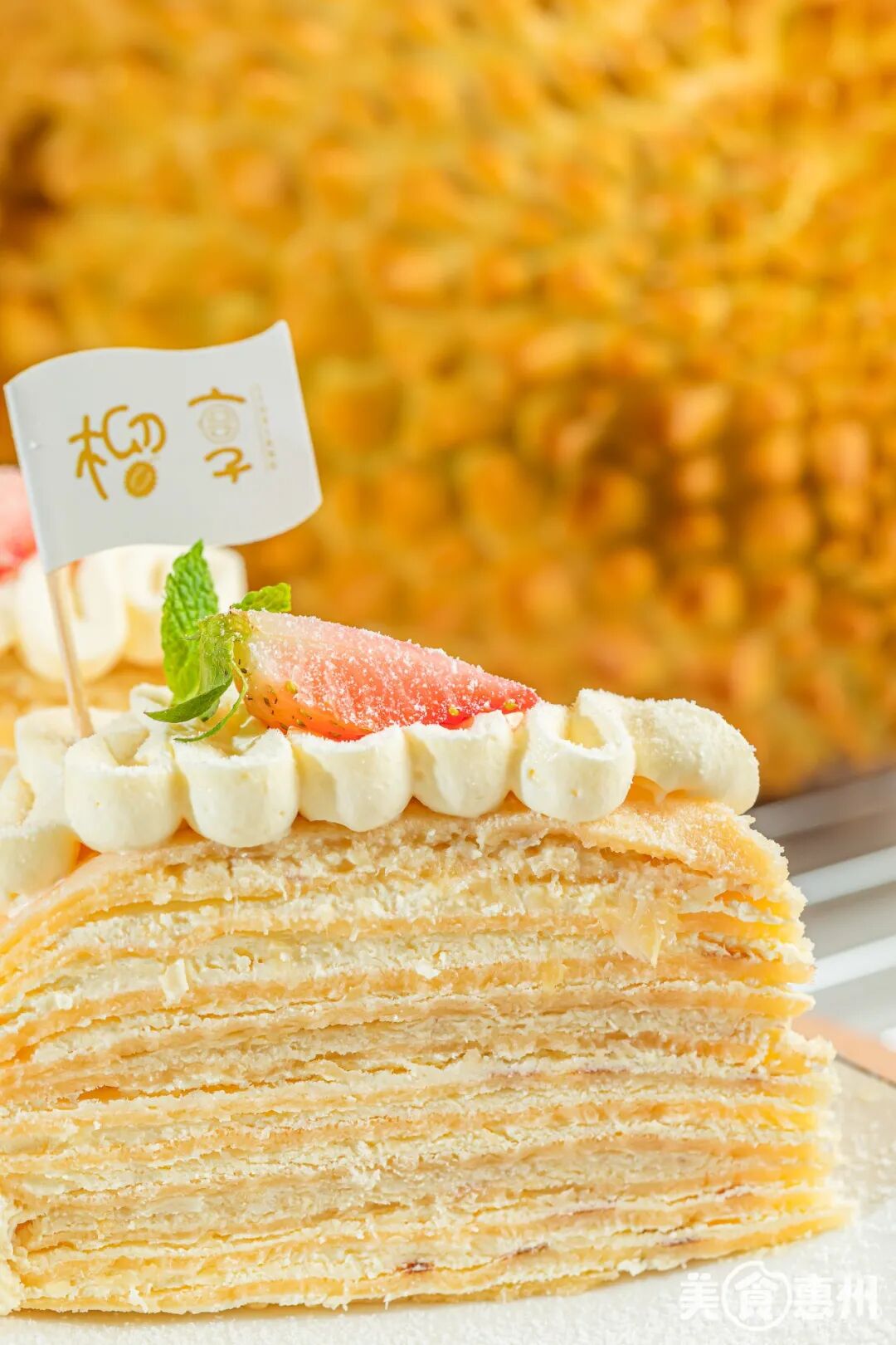 榴莲千层也是店内的主打产品之一,薄如蝉翼的千层皮叠加着新鲜的榴莲果肉,用叉子一压就会爆浆的质感,作为榴莲控的我怎么能错过呢!