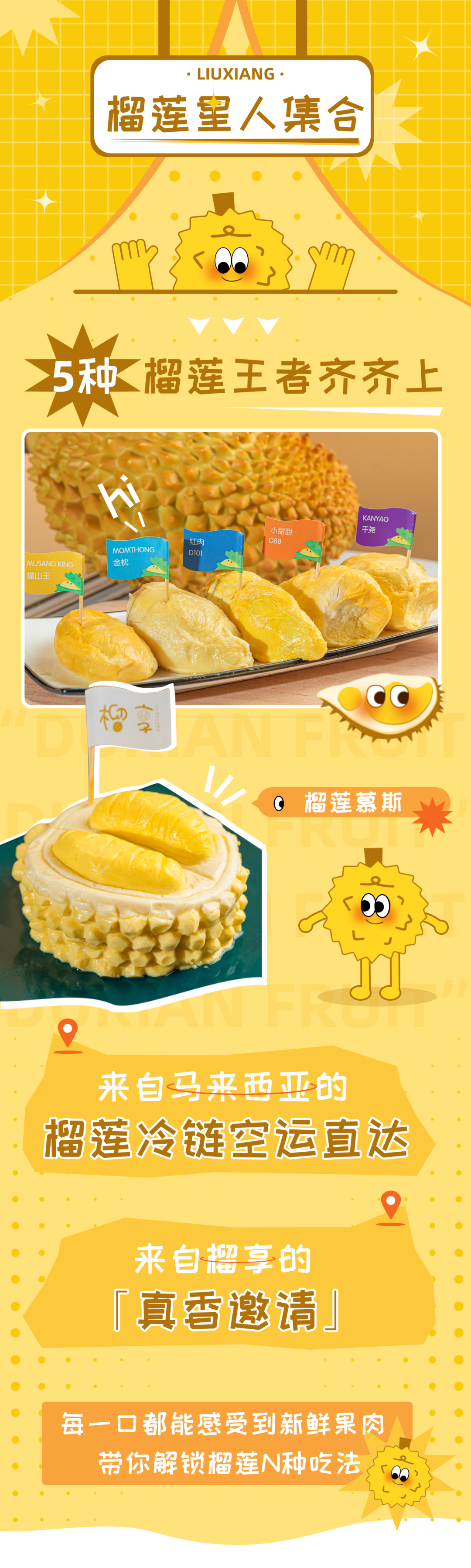 开榴莲如同“开盲盒”一般的感觉你感受过吗?在榴享你丝毫不用担心~88元就可以品尝到马来西亚猫山王、泰国金枕、马来西亚红肉、马来西亚小甜甜、越南干尧5种品种的榴莲!满足感MAX!