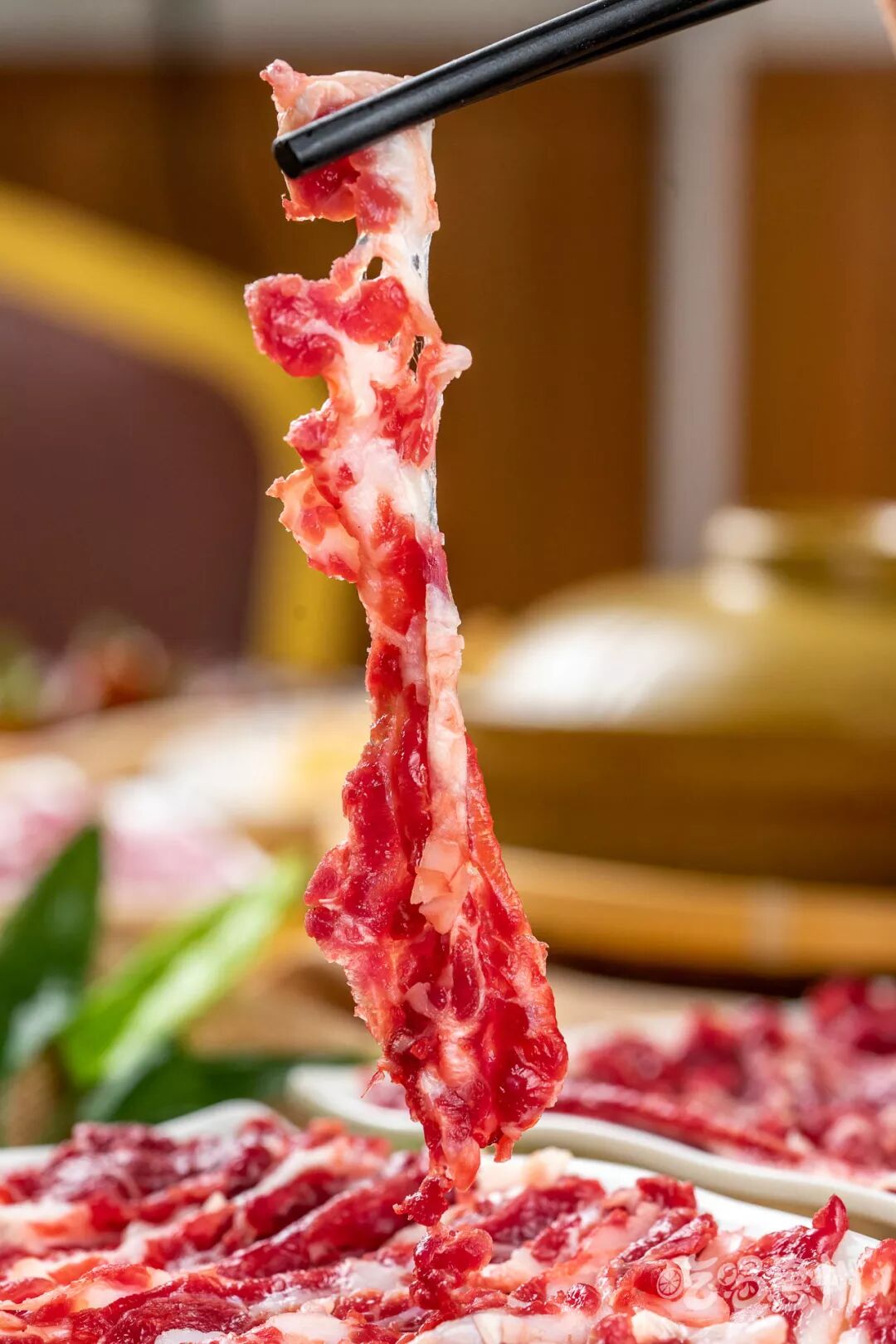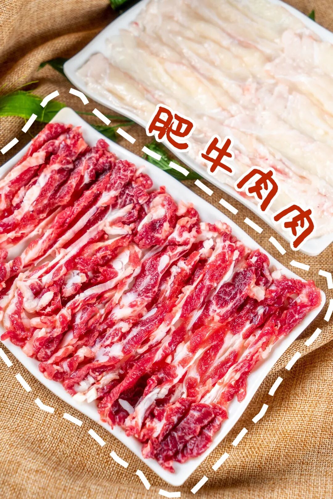 肥牛其实是经过人工按摩,把牛的脂肪揉搓成网状脂肪,这样出来的牛肉的口感就特别的鲜嫩。也是火锅口碑界里最受欢迎的肉肉啊!