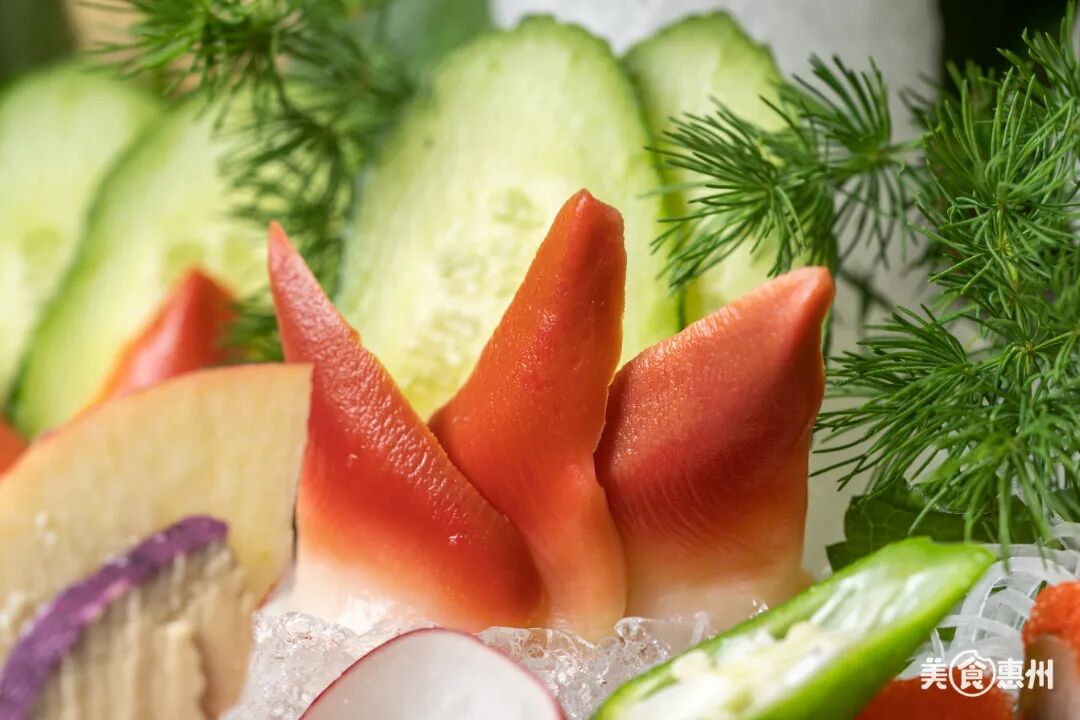 精选的优质食材盘盘冰鲜,光是卖相便令人食欲倍增;辅以厚切、角切等精细刀功,将刺身的口感呈现至巅峰状态。