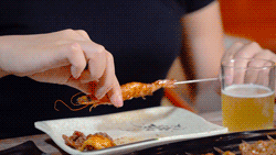 虾壳上面覆着师傅特调了烤料,焦脆的虾壳还富有高蛋白可以直接食用!
