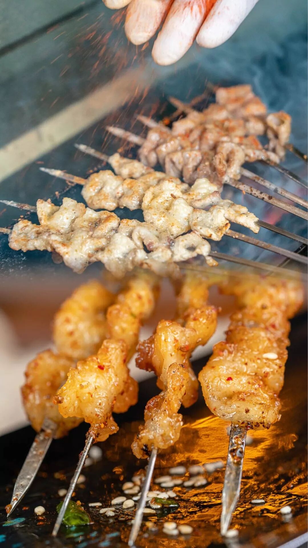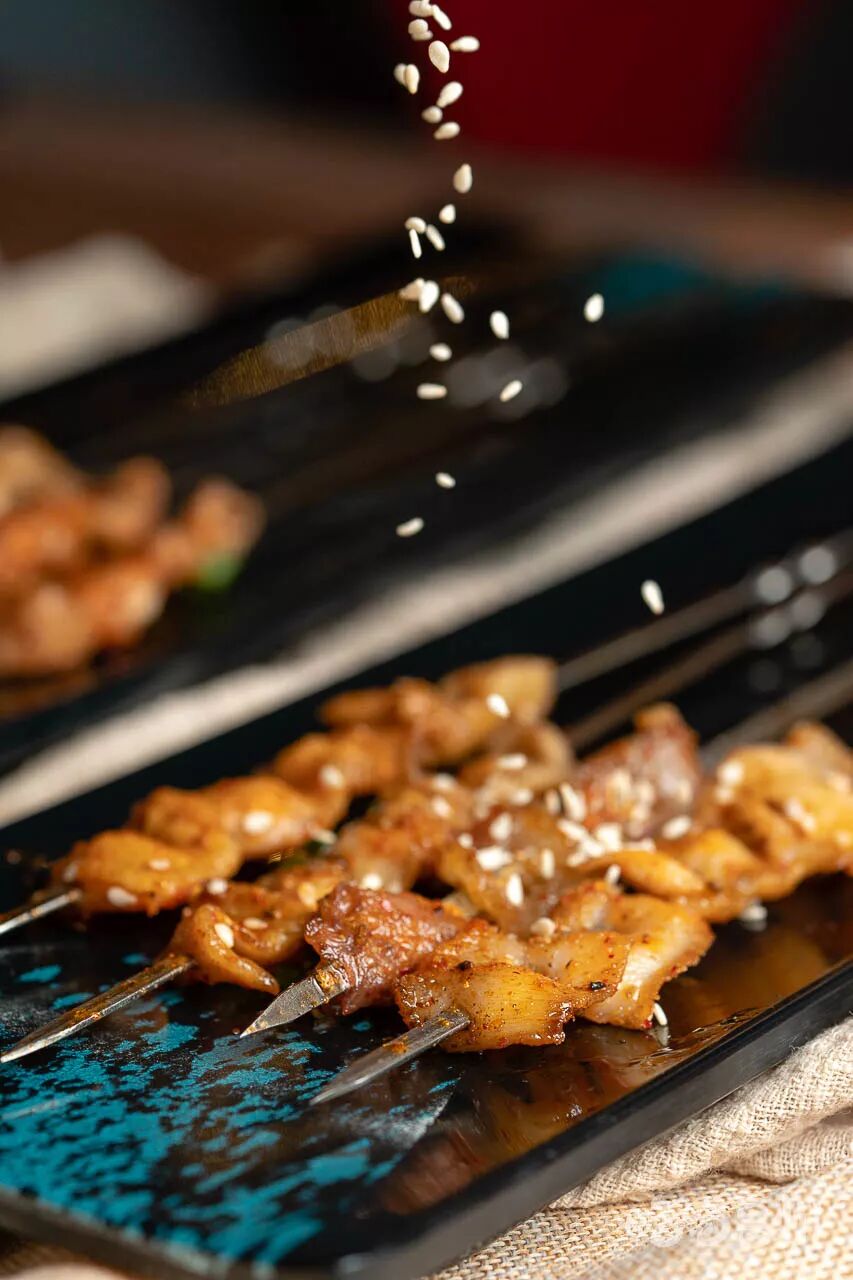 烤串儿一把把上桌,应接不暇,赶紧开动!