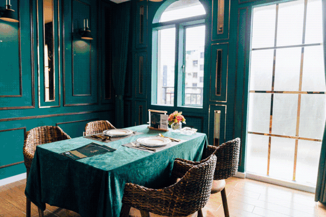 六楼以复古风格为主调,七楼有三个风格截然不同的就餐品酒区域,八楼是天台,治愈绿的高雅环境瞬间让你挪不开眼。