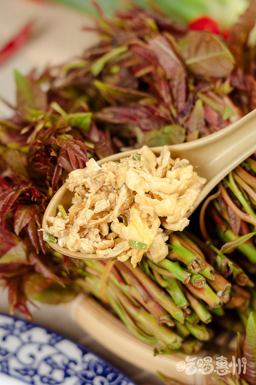 吃的时候一定要满满一大勺,香椿嚼起来是脆脆的,搭配鲜香的鸡蛋,口感层次十足。