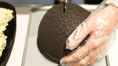 拉丝特大榴莲菠萝包是招牌榴莲菠萝包的升级plus版,店员会现场剪开切块方便食客食用。内馅增加足量的马苏里拉芝士,趁热撕开就能看见超浓密的拉丝。
