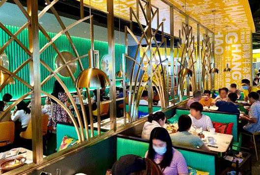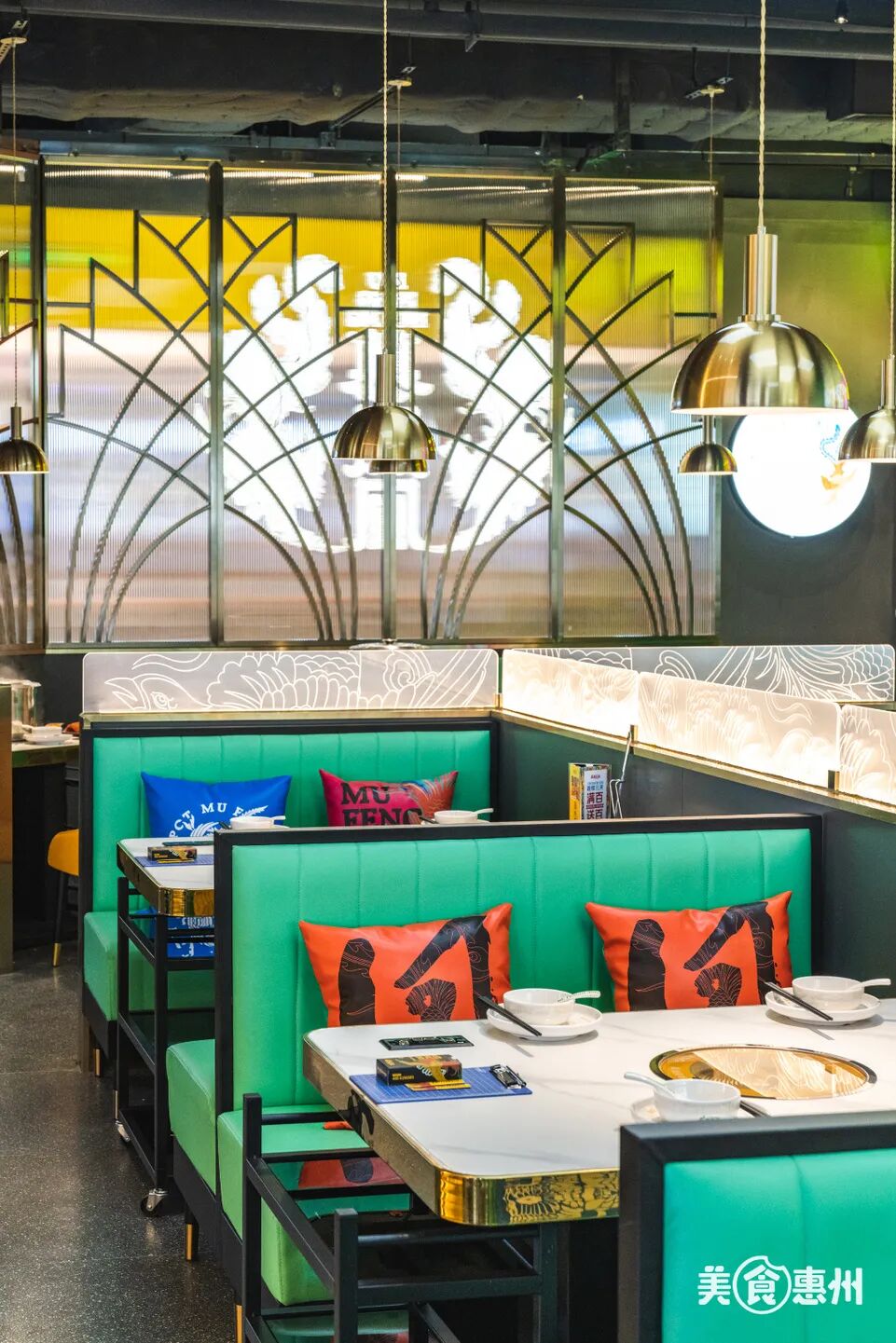 步入店内就能看到店内以饱和度较高的榴莲黄和深绿色作为主色调,软质的座椅很是舒适。