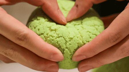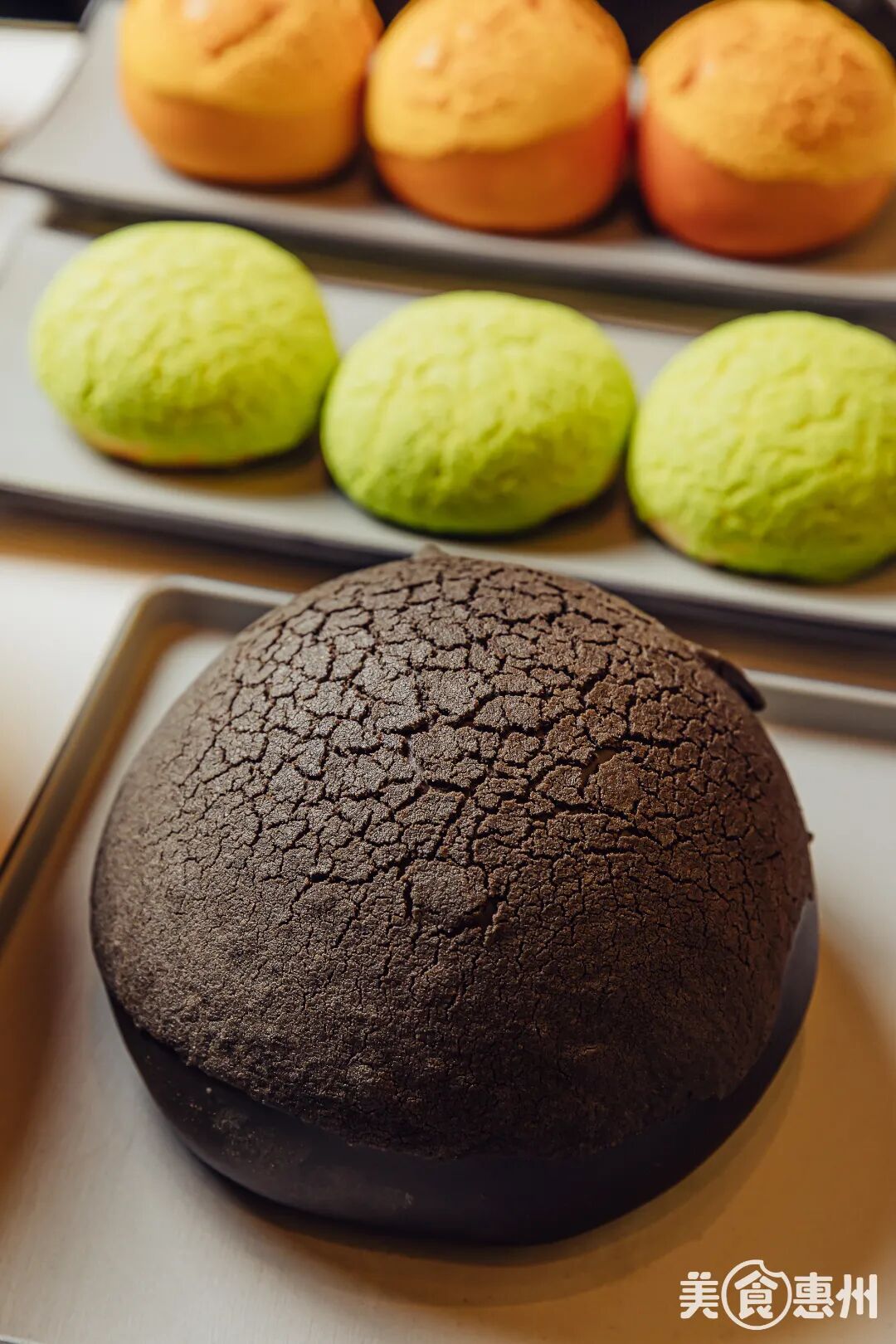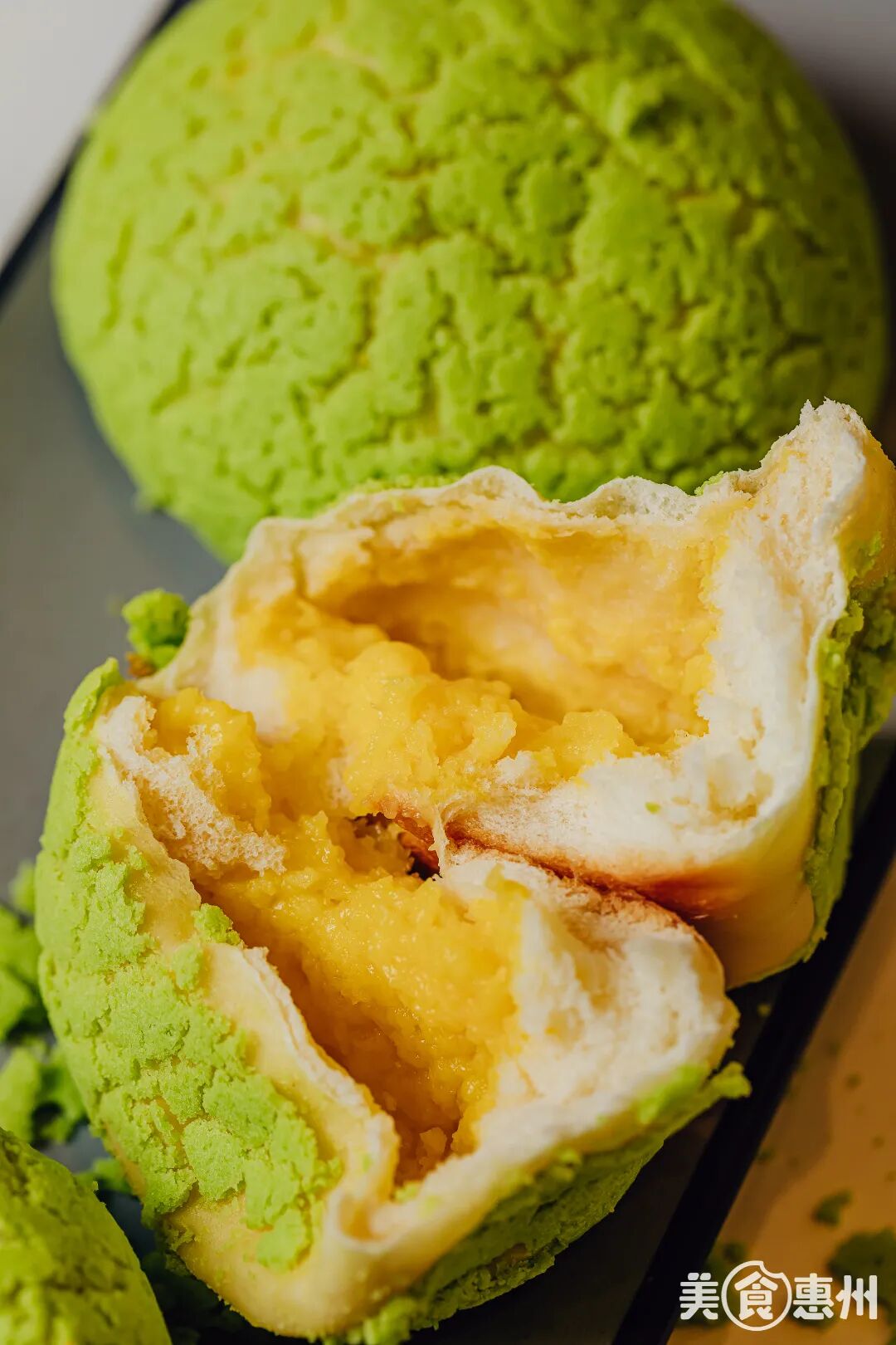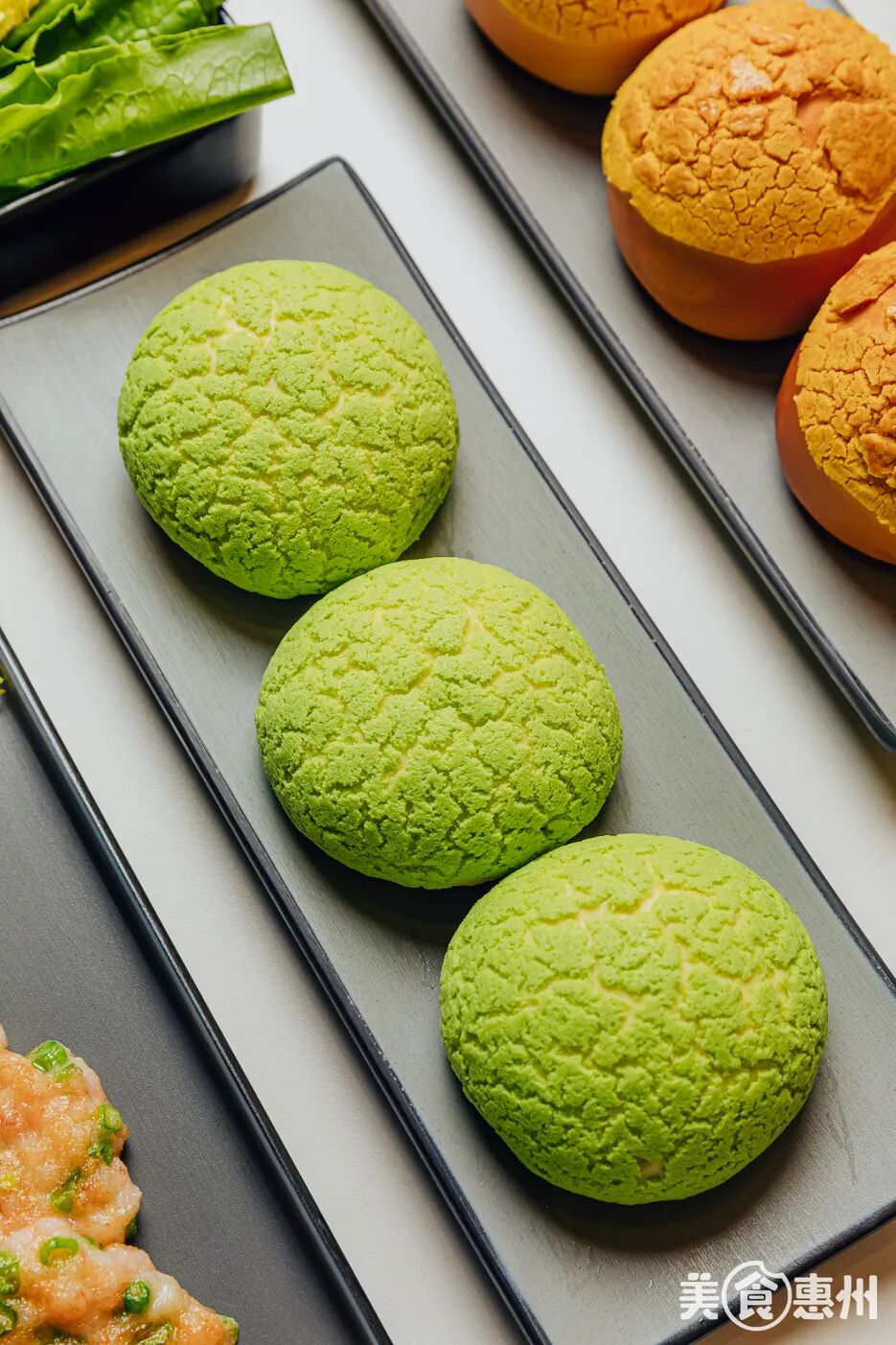 超抢眼的青绿色外表让人一眼便印象深刻,松软且略带韧劲的面包用菠菜汁进行天然的染色,食客可以放心食用。