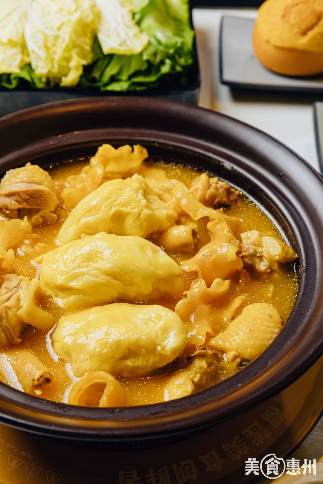 选用肉甜而饱满的金枕榴莲和养足150天的新鲜走地鸡作为原材料。再辅以独家调制配比的汤底,鲜美又上头。加之榴莲与鸡均是营养丰富的食材,广东人一定要尝尝这道美味。