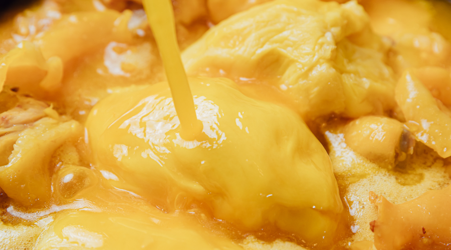 趁刚吃的榴莲还留有余味在舌尖上,赶紧来块紧实鲜嫩的鸡肉!吸收了榴莲香气的鸡肉,吃起来更显香醇。