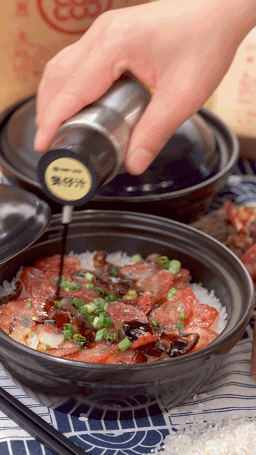煲仔汁是秘制的,油汁浇入到饭里的瞬间,吱吱作响,此时再也无法矜持!(喜欢湿一些的口感,就让饭多焖半分钟;喜欢饭焦更酥脆一些,就在上桌后迅速搅拌开吃。)