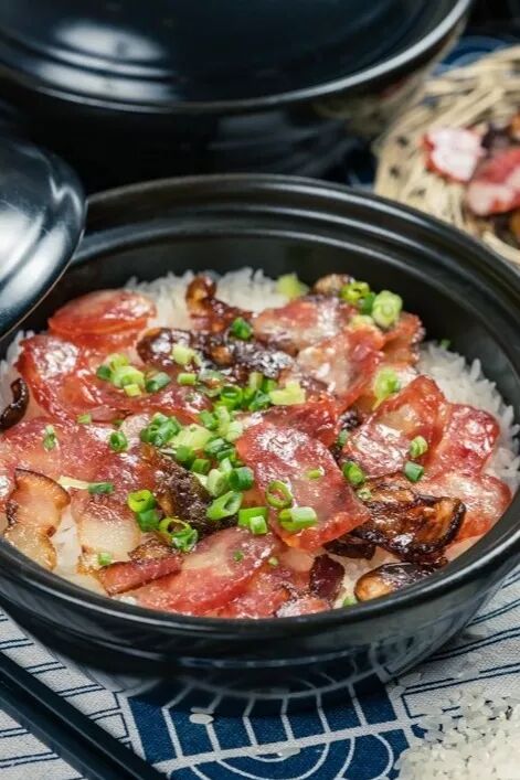腊味用的是惠州本地知名的“永记腊味”,在罗浮山酥醪村天然晾晒而成。甘香爽口,油脂分布很均匀。