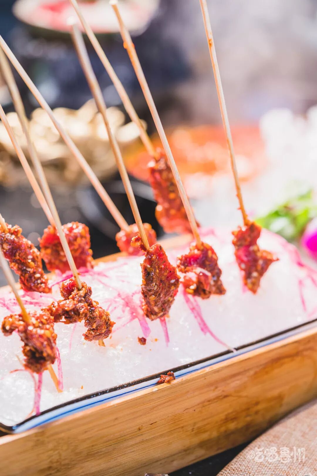 用竹签串起肉,吃起来就是方便。无需用筷子,直接一手拿起,下锅,蘸料,口口爆香。