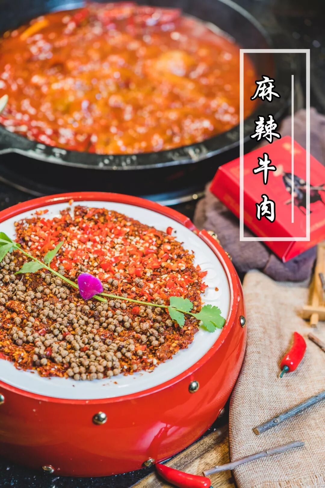 前方请注意,即将看到的就是辣劲十足的麻辣牛肉!铺满红红的辣椒面,还有各种香料,一看就知道称得上”麻辣”二字。