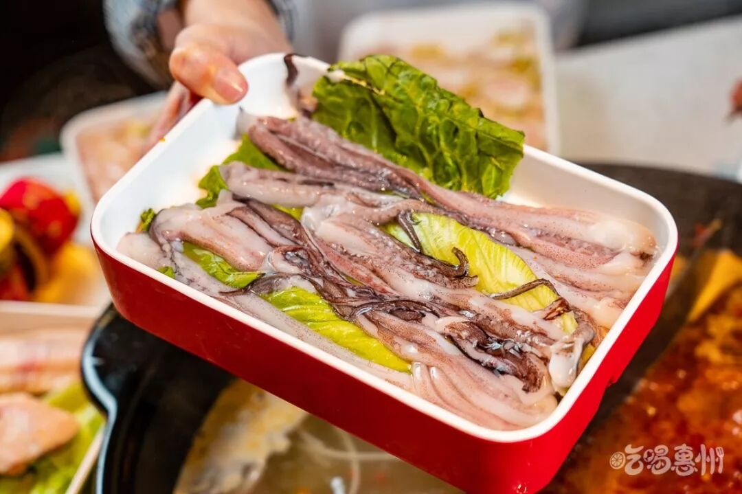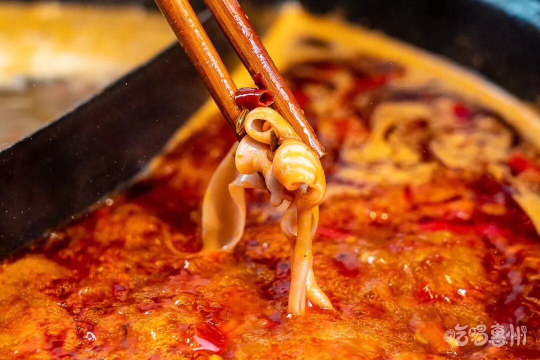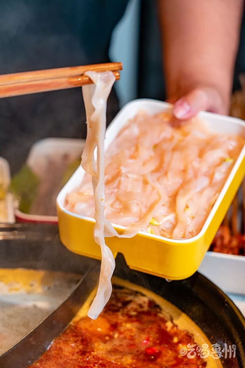 折耳根牛肉、芹菜牛肉、香菜牛肉,还有轻则花容失色,重则灵魂出窍的泡椒牛肉,款款深入人心,放进主打的红油锅底,出锅后带着汁水一并入口,味道让人欲罢不能。
