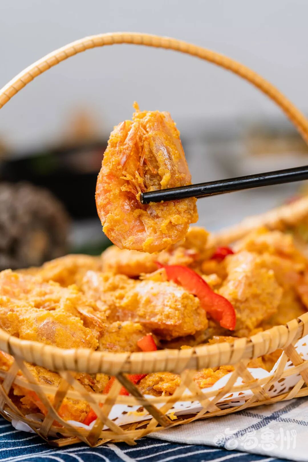 每只鲜虾的外面都裹着一层厚厚的咸蛋黄,吃之前先把外面的蛋黄舔干净,口味层层递进,层次感超强!