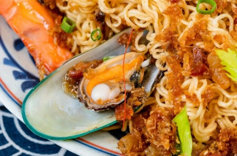 海鲜捞面全面升级!区别于以往的捞面,配料超级丰富,加入了超豪华海鲜料!有鲍鱼、青口、鱿鱼圈……