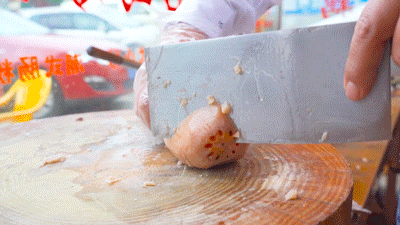 趁莲藕还冒着热气的时候,老板娴熟地三下五除二就切好了,下刀时还能看到藕丝间的藕断丝连。