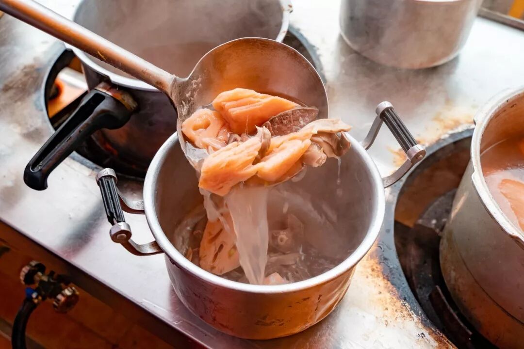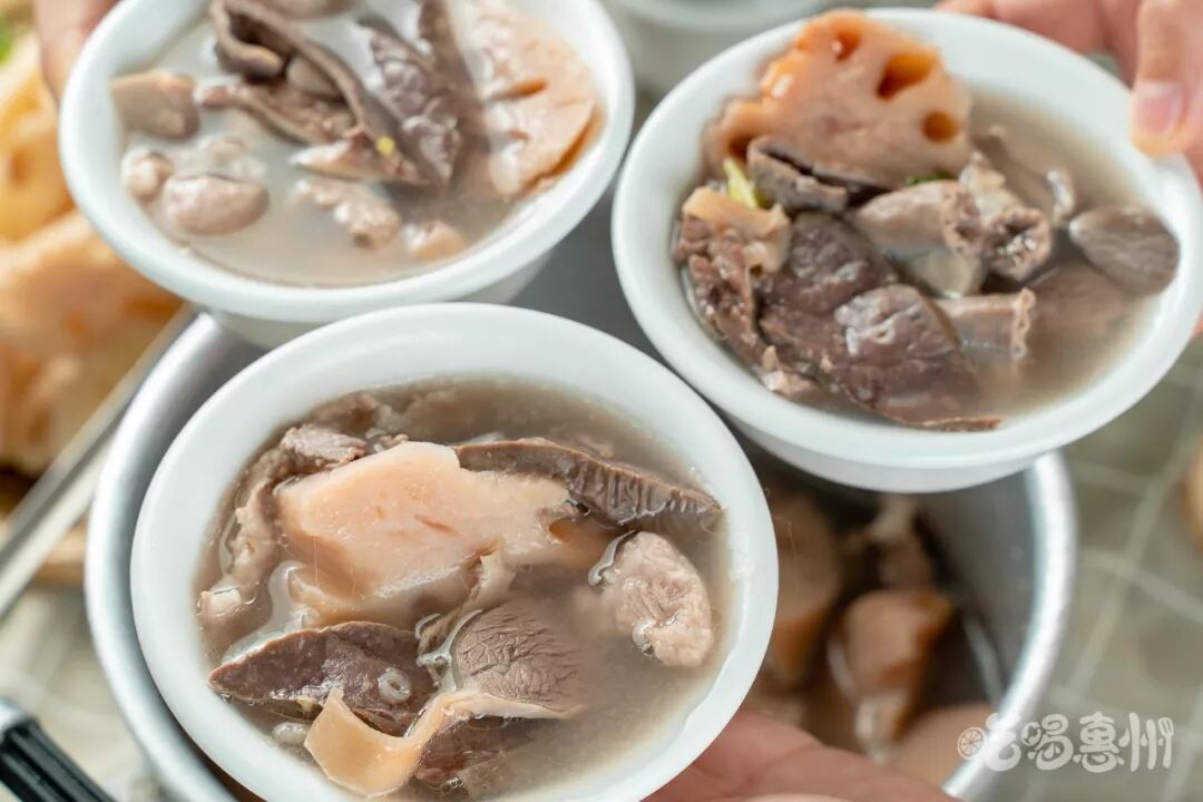 莲藕汤里会打上5种猪杂配料:猪肚、粉肠、瘦肉、猪肺、隔沙肉,料多到让你忘记莲藕才是主角。
