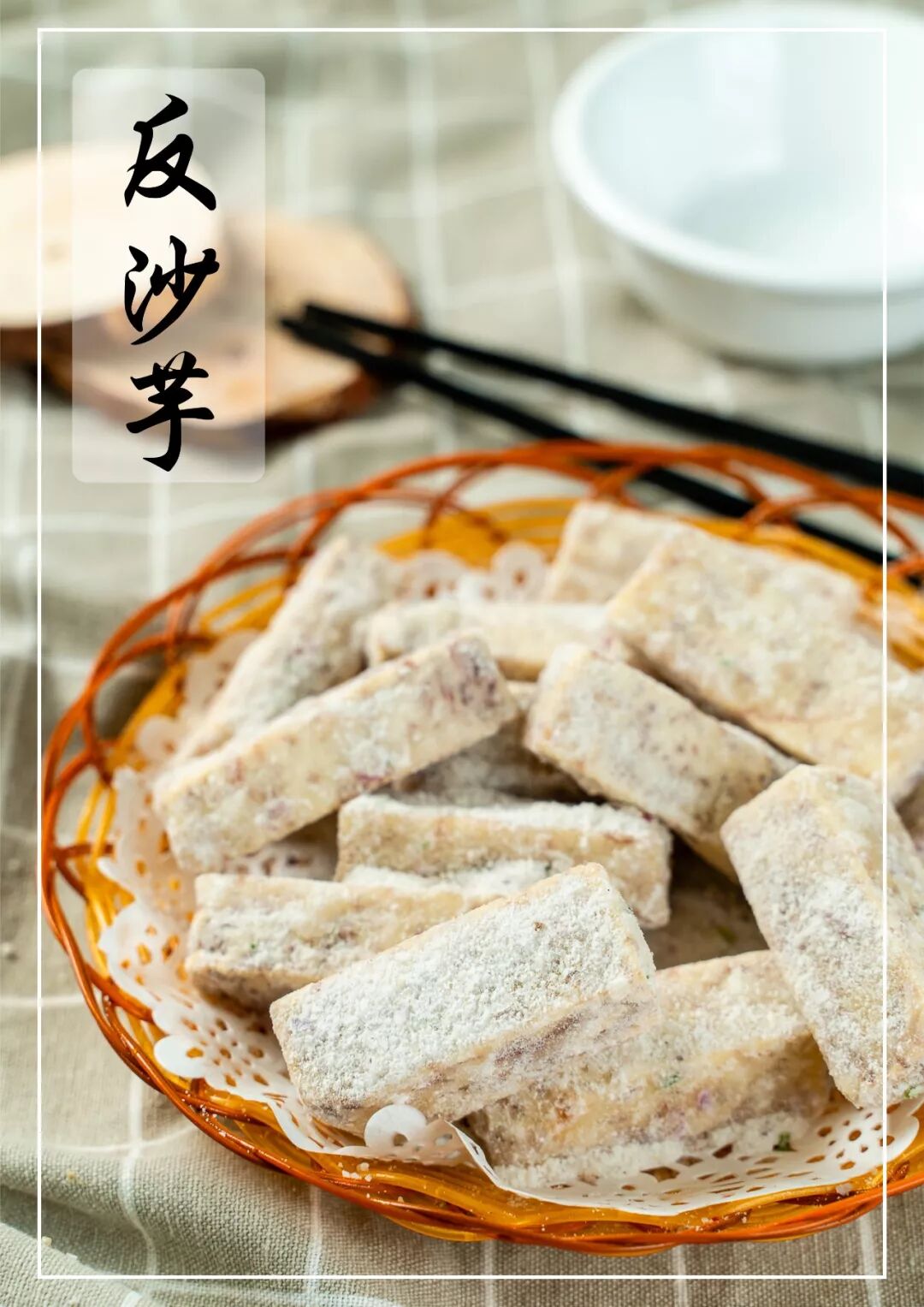 反沙芋也是孩提时候的小零嘴,芋头裹上一层薄薄的糖霜,咬开脆硬的糖衣,里面的芋头却是粉粉的,现在吃反沙芋更多的是回味。