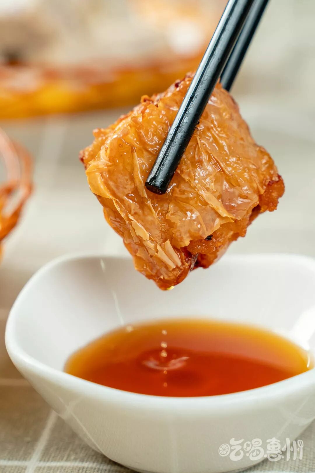当然少不了这道菜,外面的腐皮被炸得酥脆,内里的有马蹄清香,还有五花肉和鲜虾的肉香。