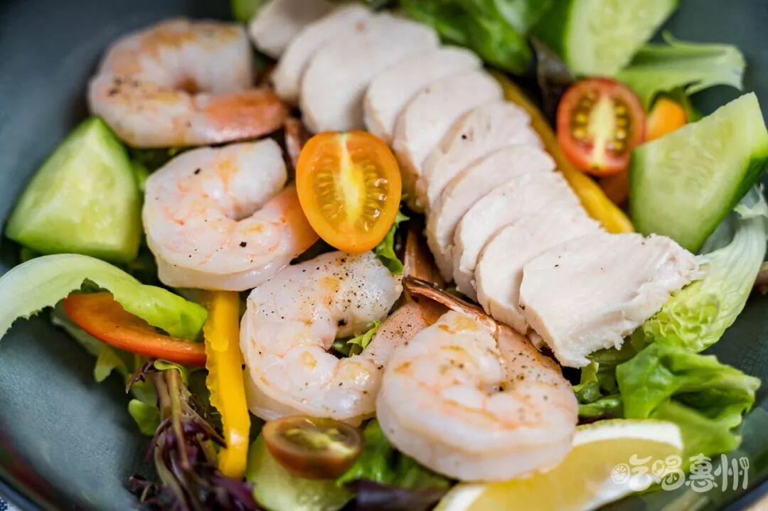 这道轻食沙拉,锁汁轻煎大虾,搭配优质藜麦,入口是鲜到弹牙的大虾和口感嫩而不糙的鸡胸肉,让我经不住对它要单独夸奖一番。