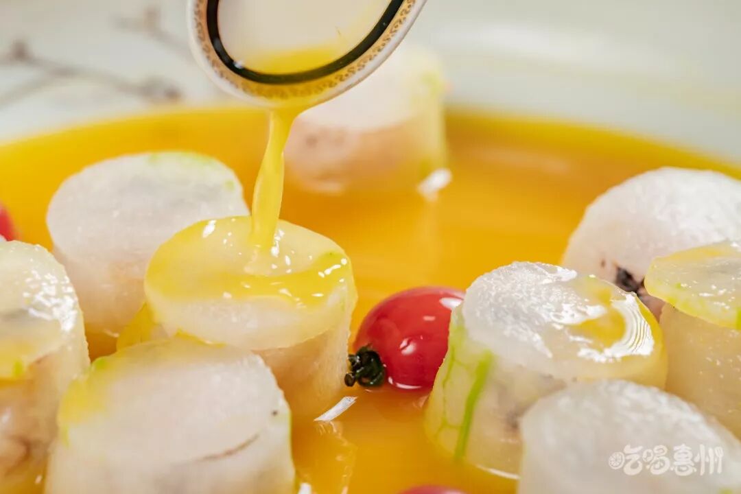 这道晶莹剔透的冬瓜盒,小清新的外表下可着实富贵呢~里面的馅料汇集了了辽参,鲍鱼,瑶柱这些海味,吃起来颇为鲜美
