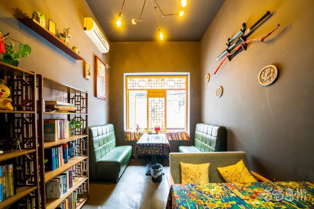 停苑客栈地处热闹桥东的街上,闹中取静。门口的小亭子放着各类书籍,满满的书香气。