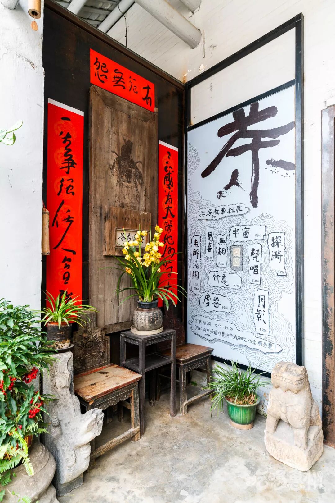 停苑别处还有一个茶馆,门前的摆饰,艺术字的展现,别有意境。