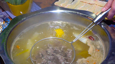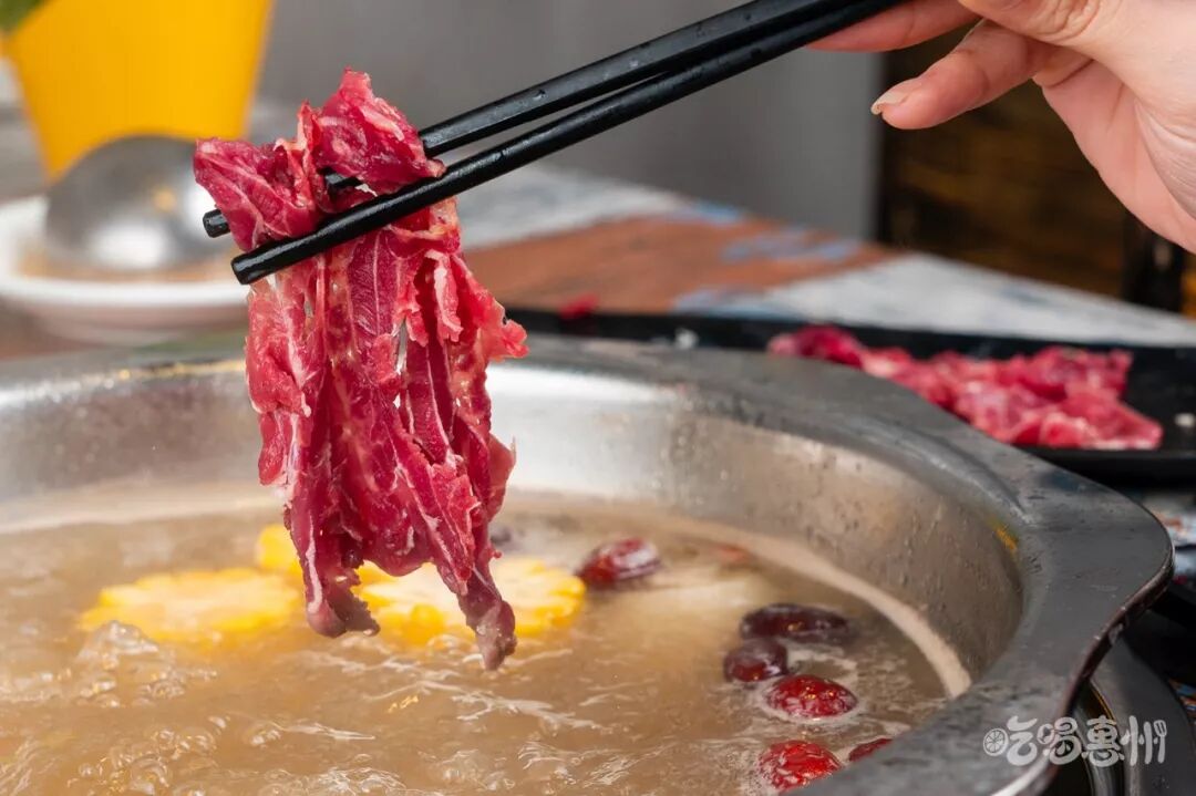 这样的牛肉涮个12秒,就要赶紧出锅啦!别坏了口感,涮完后带着鲜美的汤汁,充满肉欲,一下就会被抢光