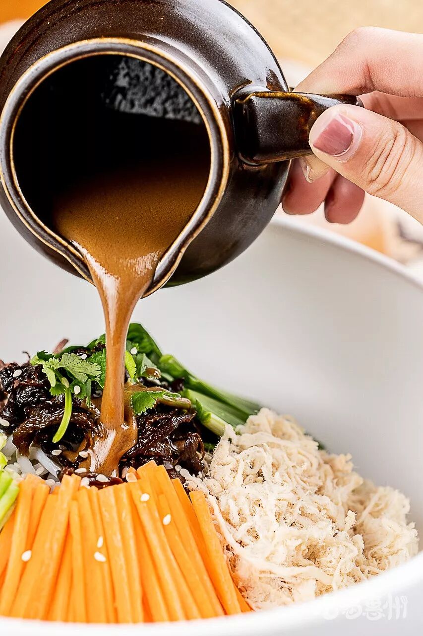 敲黑板敲黑板!第一次吃的饿魔看过来,第二种吃法,将鸡肉捞出来后,放在事先就准备好的凉拌菜盆子里,淋上秘制酱汁。