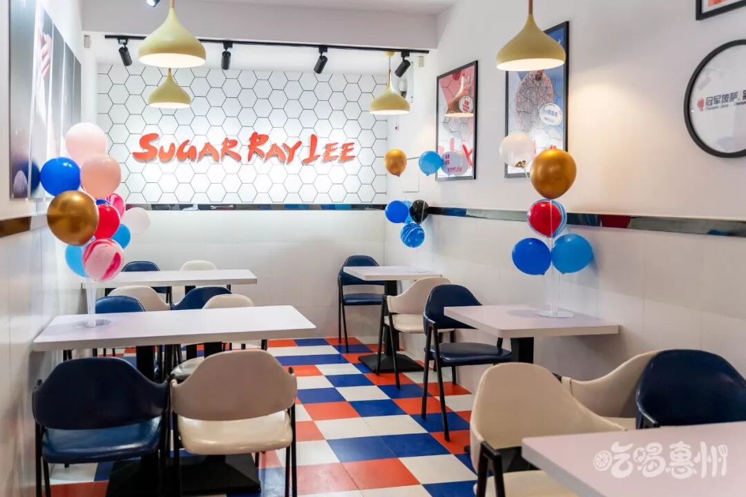 明亮简洁的环境,配上大胆的红蓝色调,每一桌都有气球的装饰,显得活泼有朝气。