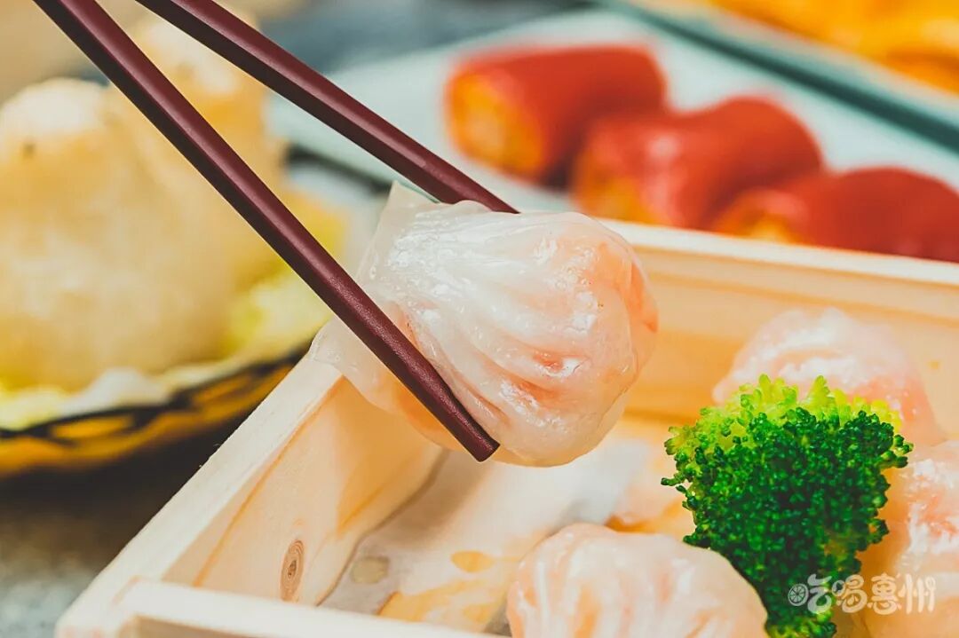 果果帮你们数来了,每颗虾饺都被饱满地填充了3只大大的鲜虾,配上晶莹剔透的外皮,口感紧实,巧妙之处在于还能吃到脆口感的笋尖粒哦~