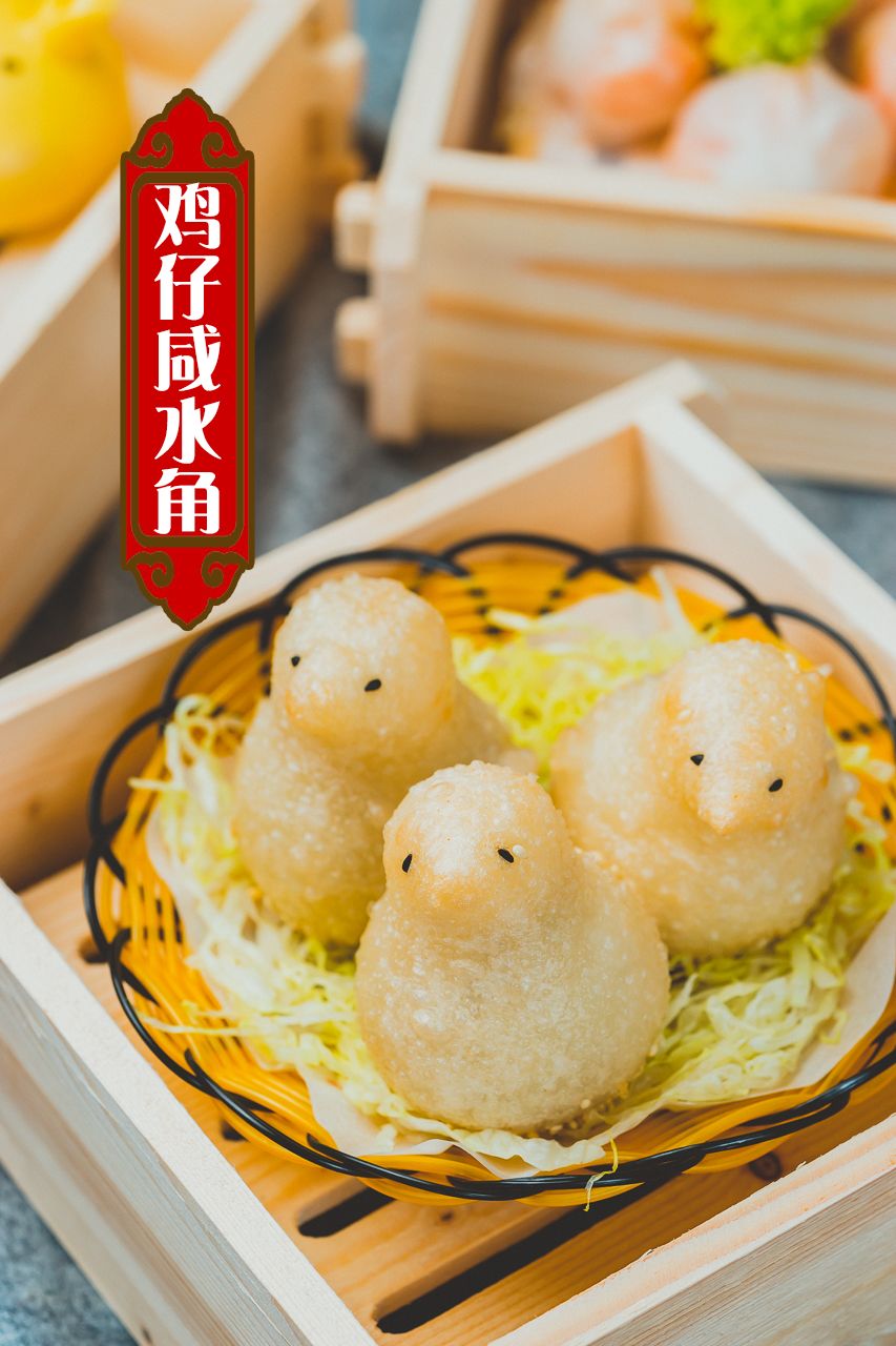 讲究美食味道的同时也讲究出品的精致,这跟这道鸡仔咸水角切得很准确。