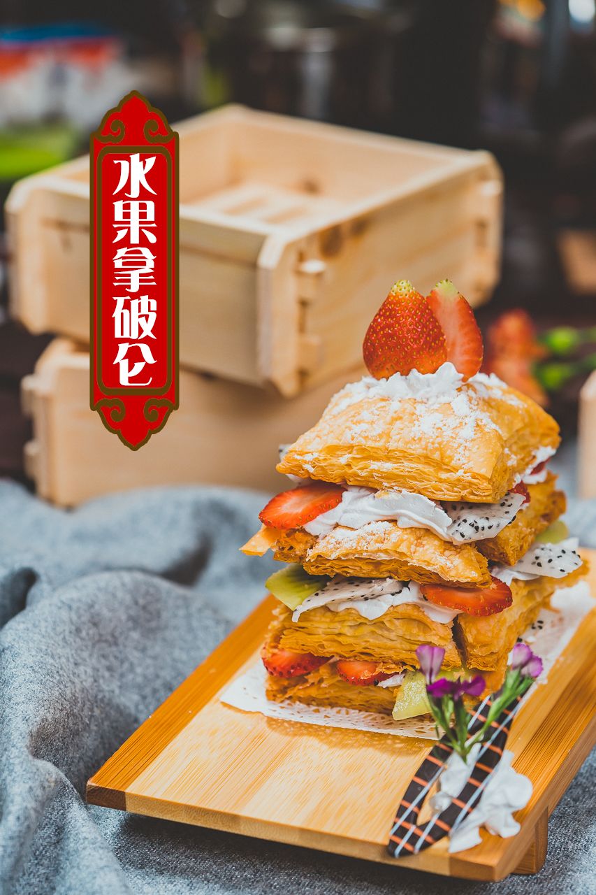几乎在早茶点心店很难会遇见的这道水果拿破仑,算得上是这里的独家明星了,光这卖相我就愿意为它打call一轮。