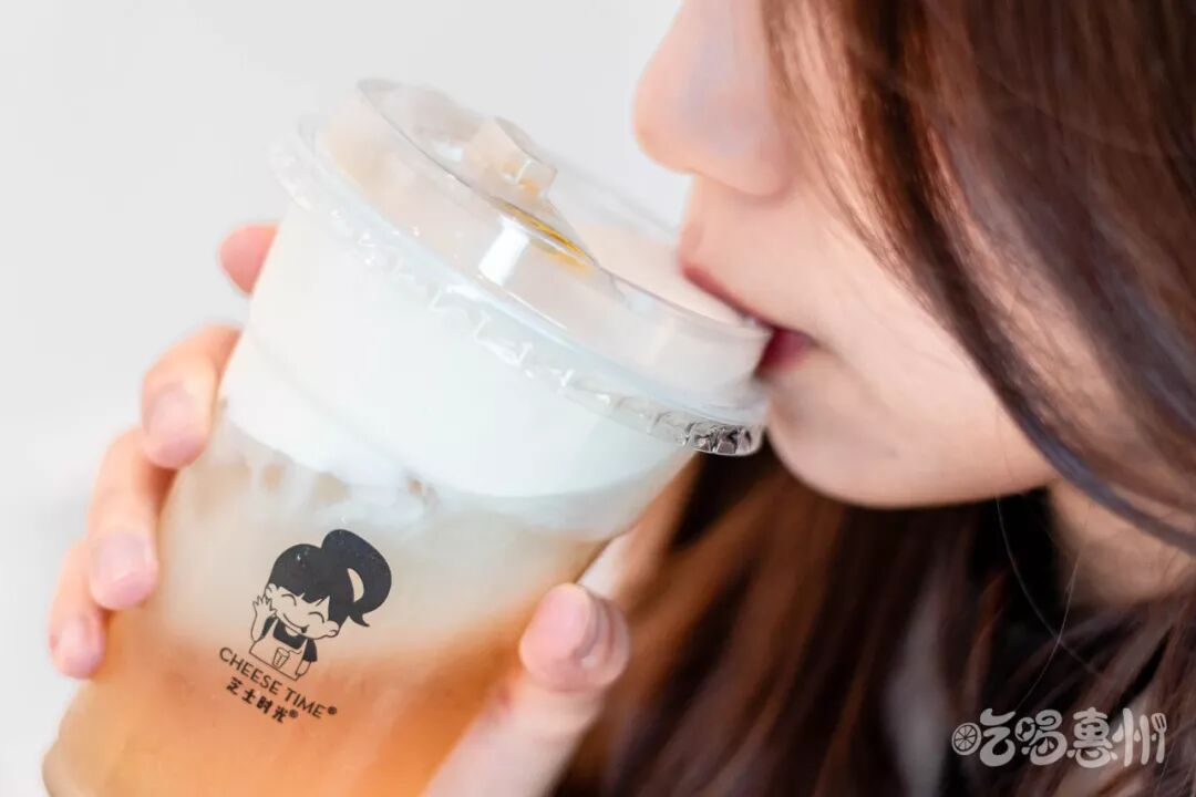 芝士茶喝起来也是有讲究,打开上面杯盖,先喝一大口芝士奶盖,感受芝士的浓郁。