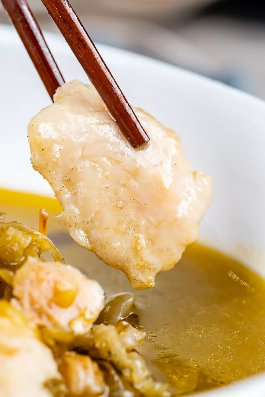 鱼肉鲜、厚、滑、爽!这时候来一份热乎乎的米饭,浇上酸汤汁,2碗饭都轻松搞定!