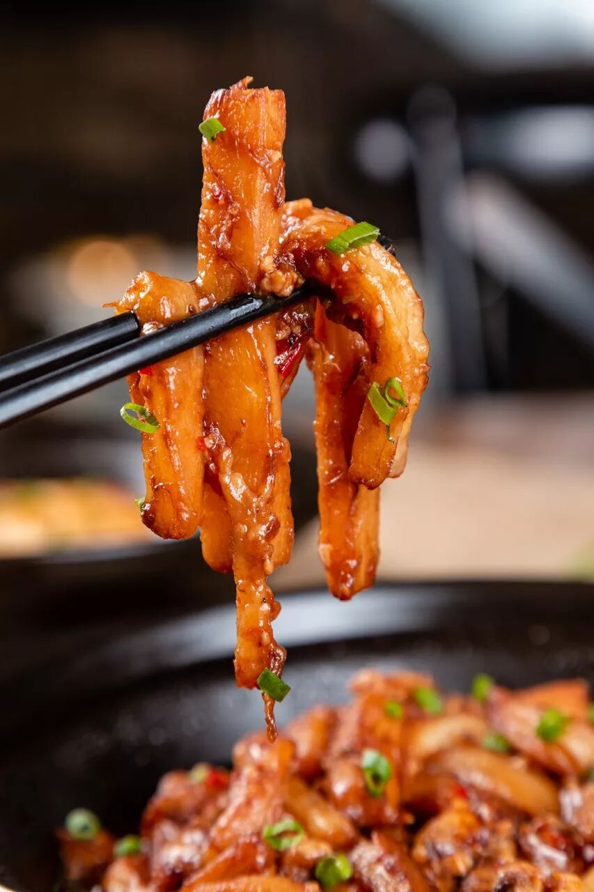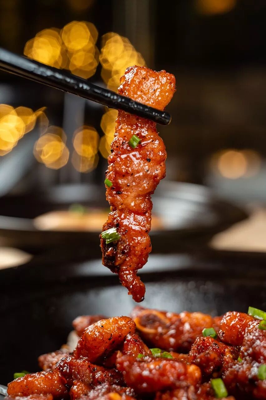 这是我特别喜欢的一款菜,切成长条的它每一块都分量感人,肥瘦相间的肉带着浓郁的黑椒风味,口感也是Q弹鲜嫩。