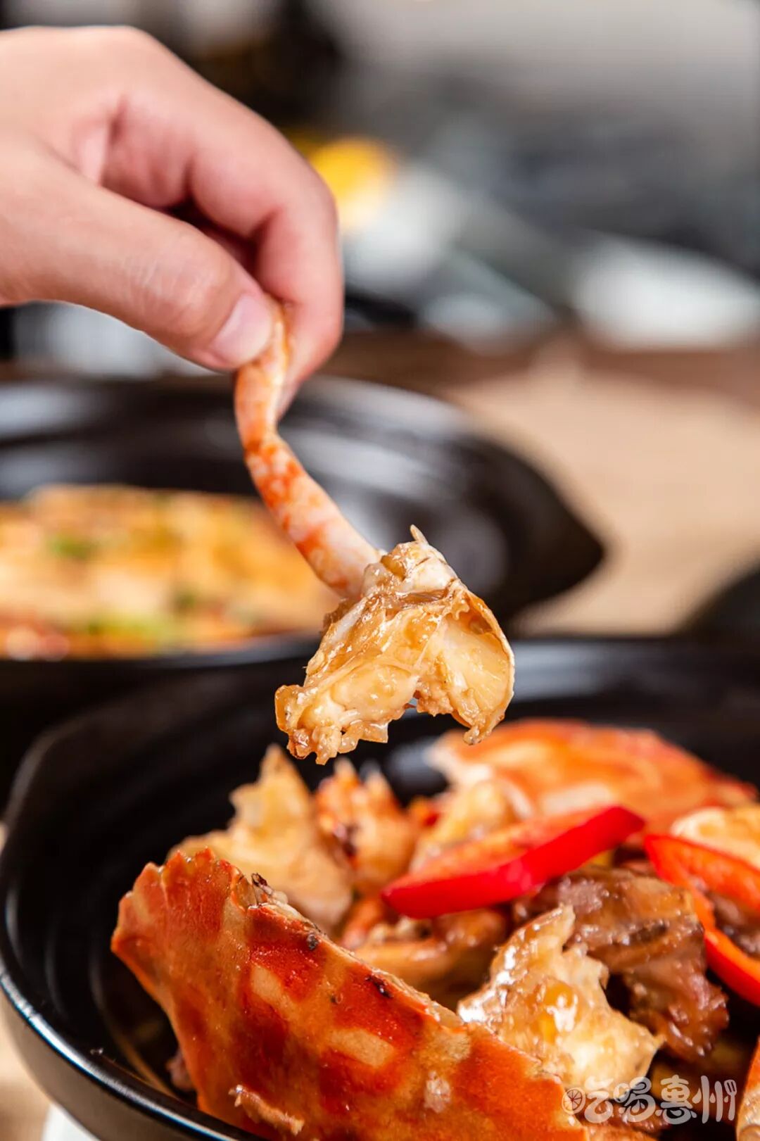 这道菜既有海鲜的鲜味也有粤菜的风味,肉蟹和土鸡放在一起进行焖煮,一开盖,扑鼻来的味道够鲜也够香。