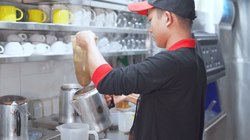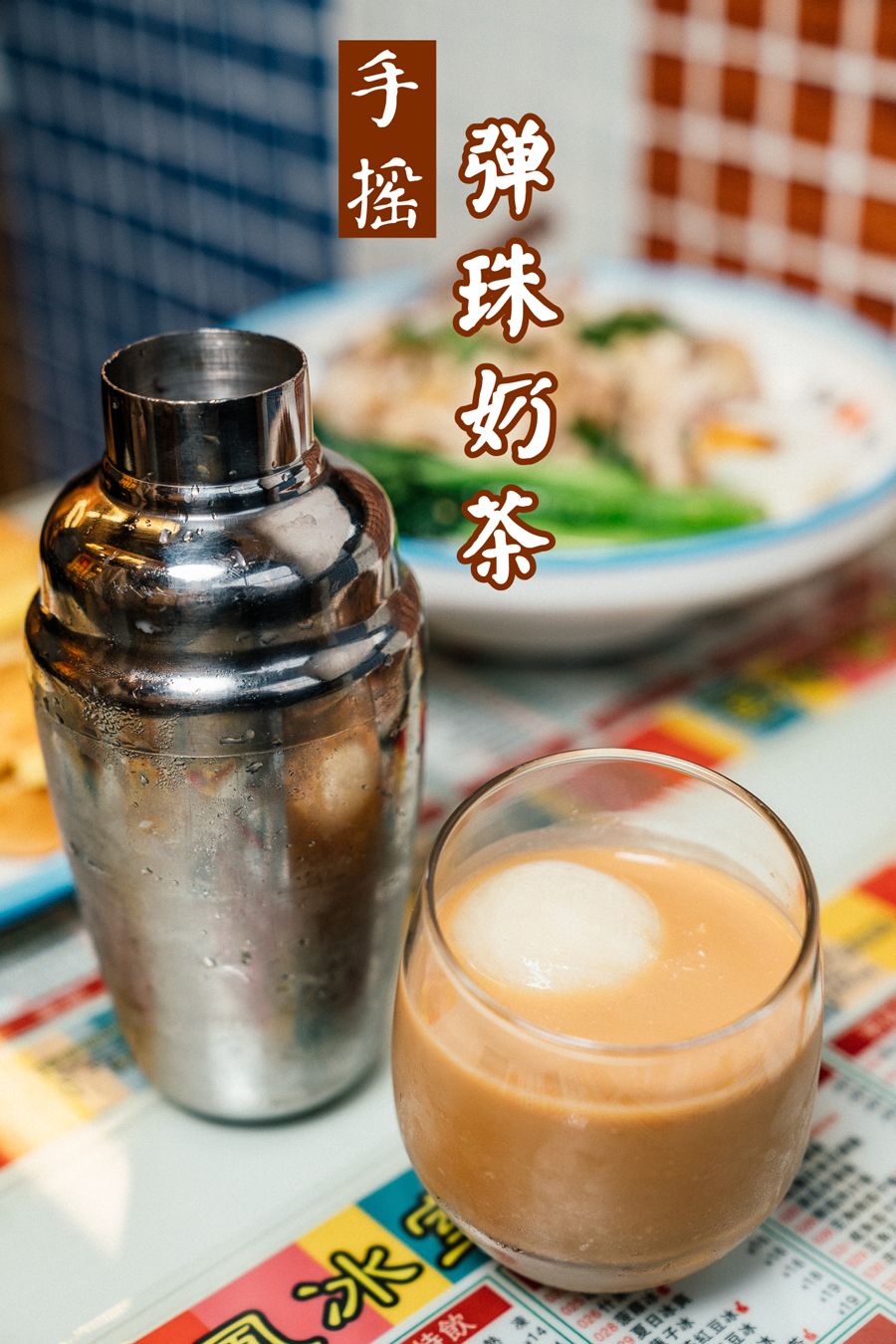 冰室怎么能不点上一杯经典的手摇弹珠奶茶呢?港式奶茶讲究的就是茶味和奶味的平衡,光是拉茶都要来回拉几次,一杯好的港奶总是需要经过这样漫长的过程。